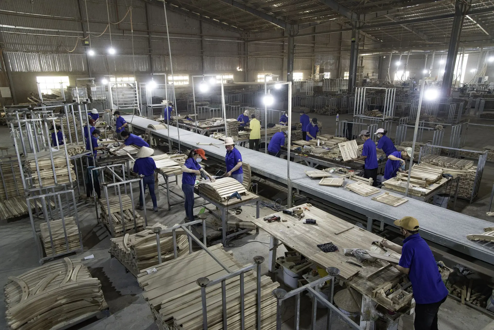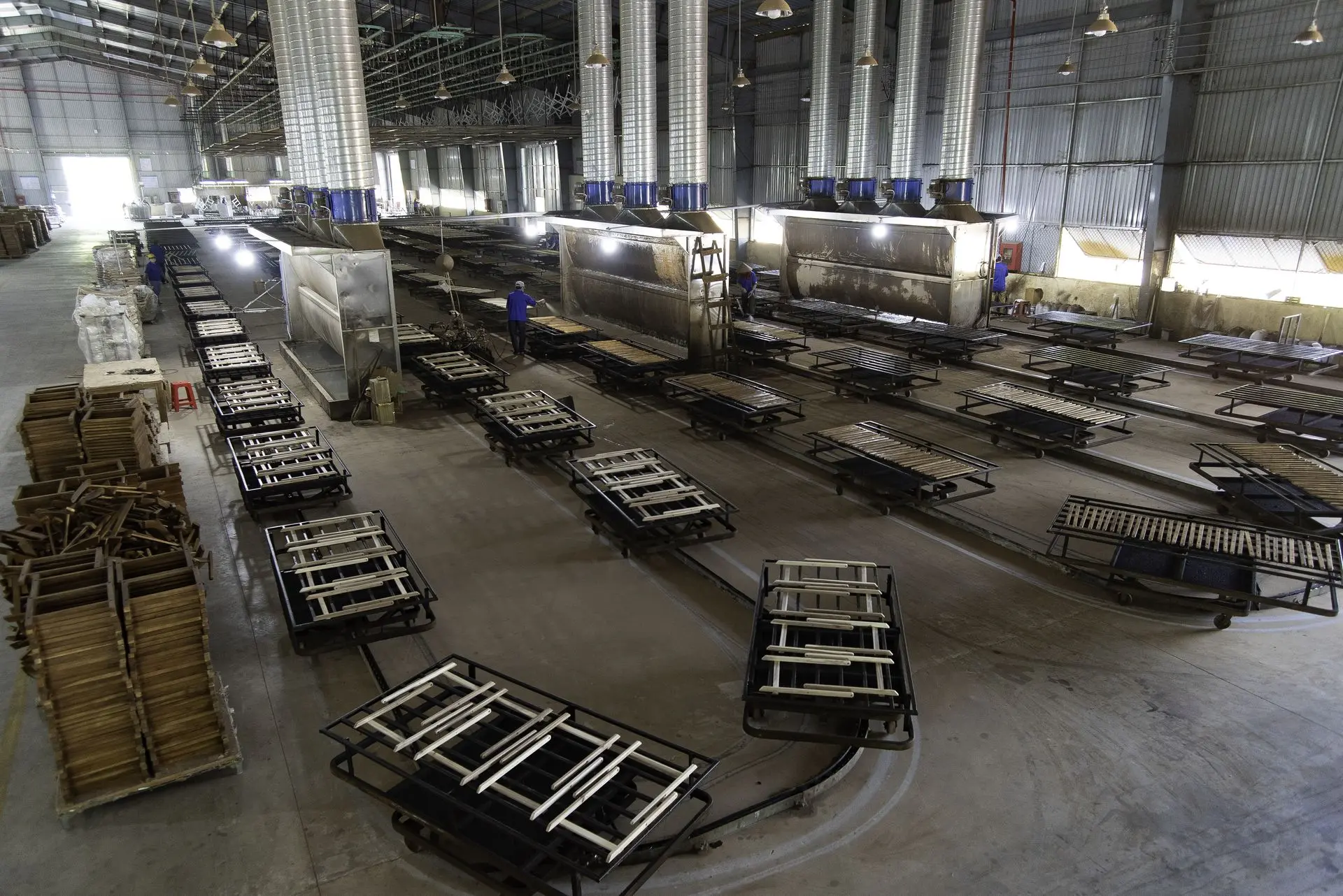Our production capacity reaches approximately 80 containers per month, with annual turnover ranging from 10 to 14 million USD. Our facilities span thousands of square meters, including dedicated zones for spraying, weaving, preliminary processing, refined assembly, and packaging.